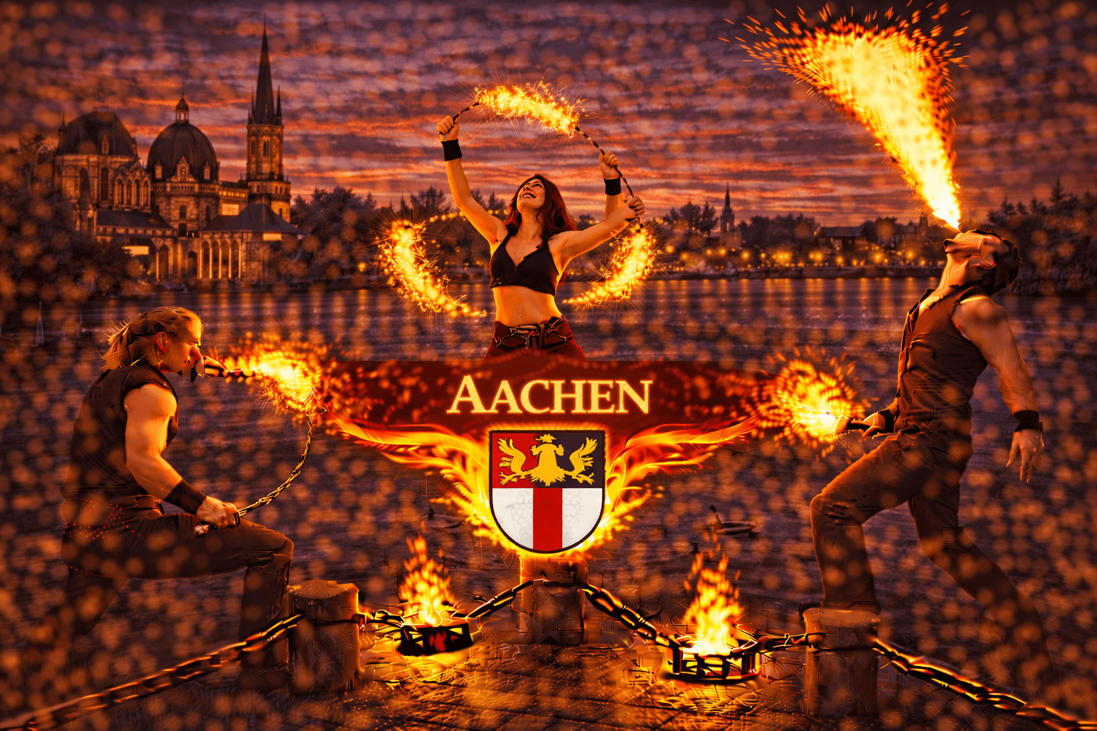 Aachen gehört zu den traditionsreichsten Städten Nordrhein-Westfalens und ist besonders für den berühmten Aachener Dom, seine historische Altstadt und die renommierte RWTH Aachen bekannt. Die Stadt im Dreiländereck Deutschland–Belgien–Niederlande verbindet Geschichte, internationale Atmosphäre und moderne Eventlocations miteinander. Zwischen Altstadt, Kurpark und zahlreichen Veranstaltungsorten finden jedes Jahr Hochzeiten, Firmenfeiern, Stadtfeste und private Events statt. Wenn Sie eine Feuershow in Aachen buchen oder professionelle Feuerkünstler buchen in Aachen möchten, sind Sie bei uns genau richtig.