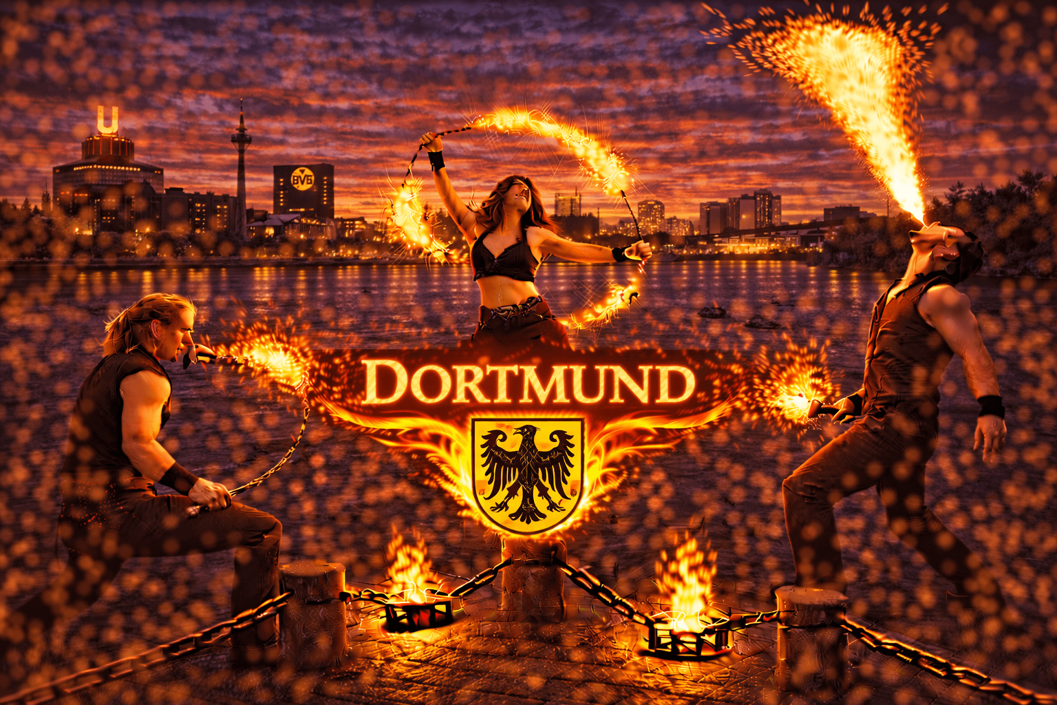 Dortmund gehört zu den größten Städten Nordrhein-Westfalens und ist eine der bedeutendsten Metropolen im Ruhrgebiet. Bekannt für den Signal Iduna Park, eine lebendige Kulturszene und zahlreiche Veranstaltungen bietet die Stadt ideale Voraussetzungen für außergewöhnliche Events. Zwischen Innenstadt, Phoenix-See und vielen Eventlocations finden jedes Jahr Hochzeiten, Firmenfeiern, Stadtfeste und private Veranstaltungen statt. Wenn Sie eine Feuershow in Dortmund buchen oder professionelle Feuerkünstler buchen in Dortmund möchten, sind Sie bei uns genau richtig.